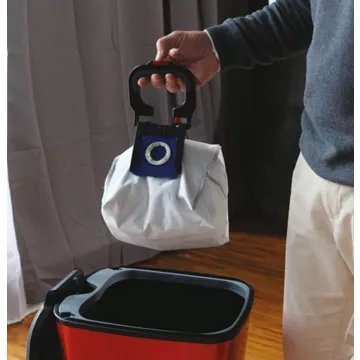 - Le + : régulation automatique de la puissance, vidage sans contact avec le sac