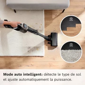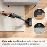 - Détail sur la puissance d’aspiration: : Elle peut varier en fonction du type de sols (parquet, carrelage, tapis, moquette) que vous aspirez et du mode utilisé (standard, éco, boost)