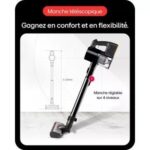 - Détail sur la puissance d’aspiration: : Elle peut varier en fonction du type de sols (parquet, carrelage, tapis, moquette) que vous aspirez et du mode utilisé (standard, éco, boost)