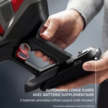 • Aspirateur à main : Directement intégré au corps de l’aspirateur balai. Se détache facilement pour une utilisation d’appoint (ex: table, voiture, fauteuil)