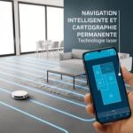 • Technologie laser : permet à l’aspirateur d’analyser en permanence et avec précision la pièce (éclairée ou non) et d’évaluer les distances entre chaque objet afin de les éviter. Cette analyse continue permet à l’aspirateur de cartographier l’intégralité d’un appartement ou d’une maison