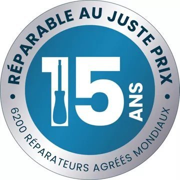 • Indice réparabilité élevé (9,4/10), pièces disponibles pendant 15 ans.