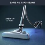 - Technologie d’aspiration : Cyclonique : utilise la force centrifuge pour séparer les poussières de l’air et les coller sur les parois pour retomber dans le bac. Elle offre une force d’aspiration constante pendant toute la durée du nettoyage
