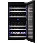 - Type de porte : vitrée, permet de visualiser facilement les bouteilles sans avoir à ouvrir la porte, ce qui réduit la circulation de l’air dans la cave et donc la variation de la température. Le traitement anti-uv protège le contenu.