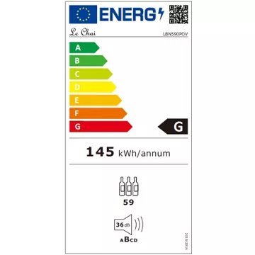 La cave à vin encastrable LE CHAI LBN590POV, conçue pour s’intégrer harmonieusement dans votre cuisine, offre une capacité de conservation optimale pour 59 bouteilles réparties en deux zones de température. Son esthétique soignée est mise en valeur par un cadre de porte vitrée noire, une ouverture droite réversible avec charnière type pantographe et un système push-open élégant qui dispense de l’usage de poignées. La porte triple vitrage, traitée anti-UV, assure une protection contre les rayons nocifs, tandis que l’installation auto-ventilée garantit une intégration sans faille, sans nécessiter d’espace supplémentaire pour la ventilation.