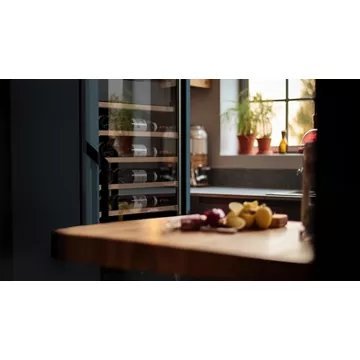 Une mise en lumière : Un bandeau lumineux blanc parcourt toute la hauteur de la cave pour mettre les bouteilles en valeur. Ce bandeau est sans risque pour le vin et vous avez la possibilité de régler l’intensité de l’éclairage.