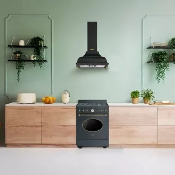 La Cuisinière gaz SMEG CO60GMA se distingue par son esthétique Coloniale, offrant une touche d’élégance intemporelle à votre cuisine avec sa couleur anthracite et ses touches de laiton antique. L’afficheur analogique et les manettes Smeg Colonial renforcent son allure rétro-chic. Au-delà de son design, cette cuisinière est équipée d’un plan de cuisson gaz de 60×60 cm, comprenant quatre brûleurs de différentes puissances pour une cuisson précise et adaptée à chaque préparation. La porte du four, dotée d’un ovale doré et d’un système Vapor Clean, facilite le nettoyage en utilisant la vapeur pour détacher les saletés, tandis que la classe d’efficacité énergétique A garantit une consommation électrique optimisée.
