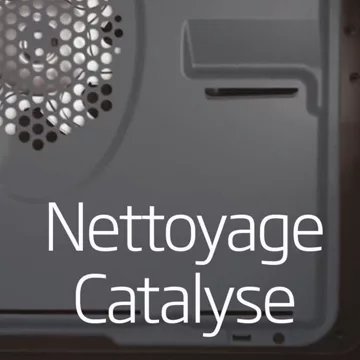 - Nettoyage : catalyse, permet un auto-dégraissage qui fonctionne à partir de 200°C. La graisse sera absorbée pendant la cuisson, vous n’avez plus qu’à passer un coup d’éponge sur la sole du four en fin de cuisson.