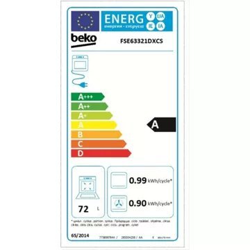 - Valeurs du label énergie : Label énergie A, Consommation en convection naturelle 0,99 kW, Consommation en chaleur tournante 0,9 kW