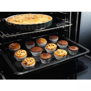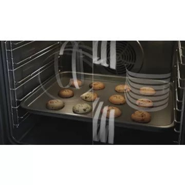 - Mode de cuisson : chaleur tournante pulsée, le four est équipé d’une hélice et d’une résistance circulaire situées sur la paroi arrière du four, pour une cuisson simultanée de différents plats sur plusieurs niveaux.