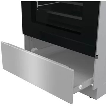 Dotée d’une table de cuisson vitrocéramique, ainsi que d’un four à chaleur tournante pulsée et d’un pratique tiroir de rangement, la Cuisinière vitrocéramique Gorenje GECS5C70XA vous facilite le quotidien tout en optimisant l’espace.