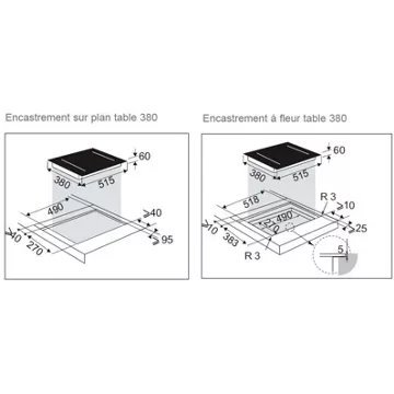 - Type de table : induction, montée très rapide en température, gestion précise de la cuisson et grande facilité d’entretien. C’est le meilleur compromis consommation d’énergie / sécurité / entretien.