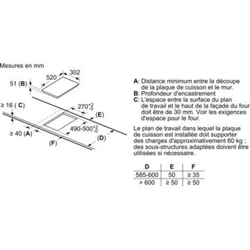 - LxHxP (encastrement) : 27 x 5.1 x 49 cm