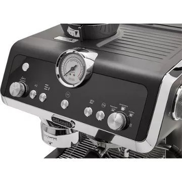 Avec ses trois recettes pré-enregistrées (expresso, café, americano), la Specialista Prestigio offre une expérience personnalisée grâce à la fonction MY, permettant d’enregistrer la longueur et la force des boissons. Le manomètre indique la ‘Optimal Zone’ pour une extraction idéale, ajustable via la molette de quantité de café et les 8 finesses de mouture. Avec un réservoir d’eau de 2 litres, un réservoir à grains de 250g, une puissance de 1450W et une pression de 19 bars, cette machine expresso noir mat avec finition inox et buse vapeur semi-professionnelle est le choix de prédilection pour les amateurs de café souhaitant maîtriser l’art de l’expresso à domicile.