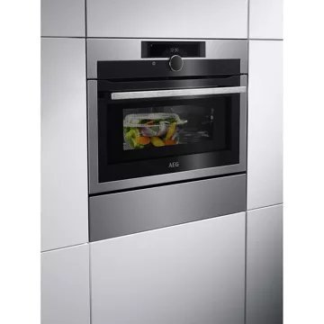 Le préchauffage rapide du Four Combi AEG BFB9000QM fera monter la chaleur au sein de la cavité presque deux fois plus vite qu’un four traditionnel. Grâce à la technologie CombiQuick, vous disposerez d’une chaleur tournante qui répartira la chaleur de façon homogène. Pour une performance maximale, ce combiné four/micro-ondes affiche une puissance de 1000 W.