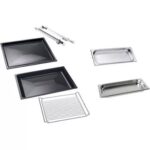 Le four vapeur Miele DGC 7350 doit être nettoyé manuellement. Il est livré avec 1 grille et 2 plats PerfectClean, 1 paire de rails télescopiques PerfectClean, 1 plat vapeur perforé et 1 plat vapeur non perforé.