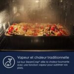 - Le + : combine la cuisson traditionnelle chaleur tournante et la vapeur pour des résultats optimaux