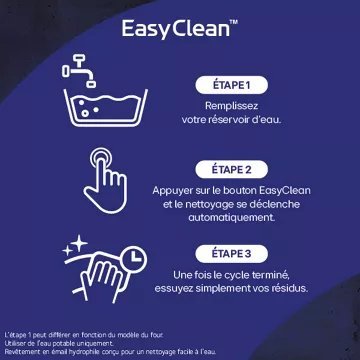 - Le + : Avec EasyClean, nettoyez votre four en 10 minutes seulement, uniquement avec de l’eau