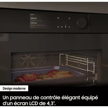 Côté design et conception, on ne présente plus l’excellence de Samsung. Des finitions sobres Bespoke donnent un look harmonieux et minimaliste à votre four NV7B7997AAK Série 7 AI Bespoke, tandis que son écran de contrôle LCD s’adapte à tous vos besoins. Une molette rotative et des commandes tactiles offrent une utilisation simplissime pour cuisiner comme un chef en quelques gestes.