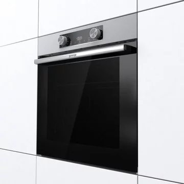 Le four encastrable GORENJE BOP6737E02XK se distingue par sa cavité extra-large de 77 L, permettant de cuisiner aisément sur plusieurs niveaux sans compromettre l’uniformité de la cuisson. Grâce à sa forme HomeMadePlus, inspirée des fours traditionnels à bois, il assure une répartition optimale de la chaleur.