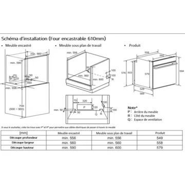 - Type d’encastrement : Four standard (60 x 60 cm)