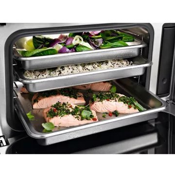 • Le + : four vapeur combiné micro-ondes, 20 programmes personnalisables, ouverture douce de la porte.