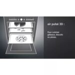 • Avantage de la chaleur tournante pulsée : le four est équipé d’un ventilateur et d’une résistance circulaire situées sur la paroi arrière du four, pour une cuisson simultanée de différents plats sur plusieurs niveaux
