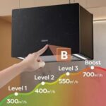 Le mode Booster augmente le débit d’extraction jusqu’à 700 m³/h, éliminant rapidement et efficacement les odeurs et fumées. L’appareil reste silencieux, avec un niveau sonore de seulement 44 à 64 dB.