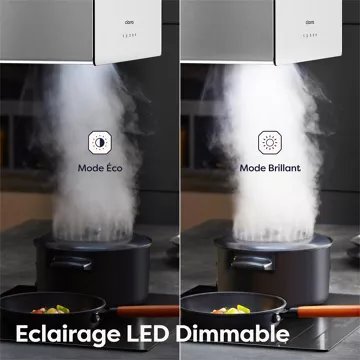 Purification par UV + filtre à charbon actif : lumière UV intégrée pour réduire les dépôts de graisse et odeurs, filtrage à charbon inclus (à remplacer tous les 2 à 4 mois