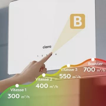 - Débit d’air maxi : 636 – idéal pour une cuisine de 25m².