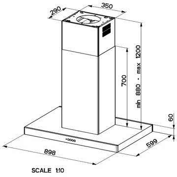 • Largeur : 90 cm, pour une zone de cuisson allant jusqu’à 90 cm de largueur.