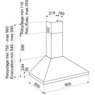 - Type de hotte : : décorative murale – évacuation et recyclage