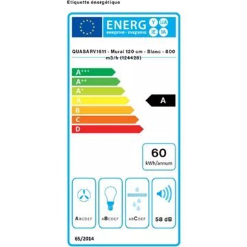 - Niveau sonore mesuré en décibels (présent sur le Label Energie) : 58