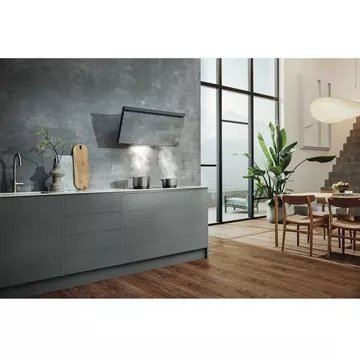 • Type de hotte : décorative murale inclinée, combine style et fonctionnalité. Sa conception permet de mieux gérer l’espace au-dessus de la zone de cuisson. Elle évite de devenir un obstacle dans l’espace de cuisson et n’obstrue pas la vue, rendant plus facile la préparation des plats.
