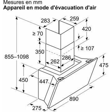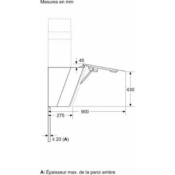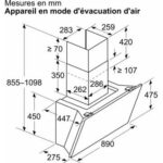 - Type de hotte : : décorative murale inclinée – évacuation et recyclage
