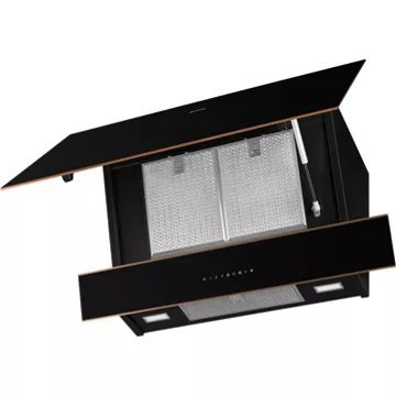 - Type de hotte : décorative murale inclinée, combine style et fonctionnalité. Sa conception permet de mieux gérer l’espace au-dessus de la zone de cuisson. Elle évite de devenir un obstacle dans l’espace de cuisson et n’obstrue pas la vue, rendant plus facile la préparation des plats.