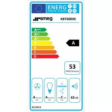 La hotte SMEG KBT600XE est conçue pour offrir un confort d’utilisation maximal avec ses touches électroniques intuitives et ses trois vitesses d’aspiration, complétées par une vitesse intensive pour les situations nécessitant une puissance accrue. L’éclairage LED, d’une puissance de 1,3 W et d’une température de couleur de 3000 °K, procure une lumière agréable et économique, tout en illuminant efficacement le plan de travail. La fonctionnalité Arrêt automatique et la classe d’efficacité énergétique A témoignent de l’engagement de SMEG envers la consommation d’énergie réduite, tandis que la clarté de l’éclairage et l’efficacité du filtrage des graisses confirment la qualité et la fiabilité de cette hotte décorative murale.