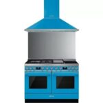 La hotte décorative murale SMEG KPF12T, issue de la prestigieuse gamme Portofino, se distingue par son esthétique pyramidale et sa couleur turquoise saisissante. Avec une largeur généreuse de 120 cm, elle s’impose comme un élément central de la cuisine, alliant design et fonctionnalité. Le matériau émaillé associé à l’inox satiné confère à cette hotte une robustesse et une facilité d’entretien exceptionnelles.