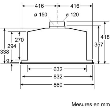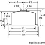 - Largeur : 86 cm, pour une zone de cuisson allant jusqu’à 90 cm de largueur.