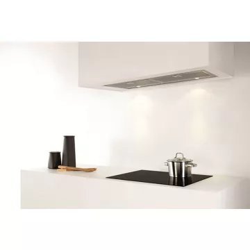- Type de hotte : encastrable, s’intègre parfaitement dans les armoires, préservant l’esthétique de la cuisine. Elle offre une extraction efficace des fumées et odeurs tout en restant discrète. Son design discret et sa performance font d’elle un choix idéal pour les cuisines modernes soucieuses de leur apparence.