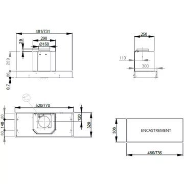 - Type de hotte : : encastrable meuble – évacuation et recyclage