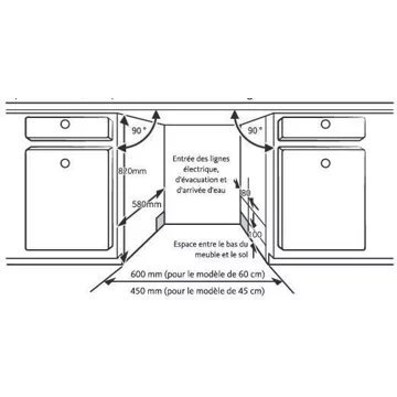 - Type d’ouverture de porte : si votre plinthe mesure 9 cm ou moins, seul un lave vaisselle porte à glissière compatible plinthes basses sera adapté à votre cuisine. Cependant, si votre plinthe mesure plus de 9 cm, tous les systèmes d’ouverture de porte seront compatibles avec votre cuisine.