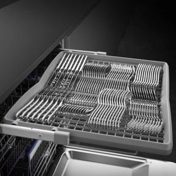 - Tiroir à couverts : Oui, il est placé dans la partie haute du lave-vaisselle et permet de bénéficier de 25% d’espace supplémentaire dans le panier inférieur