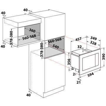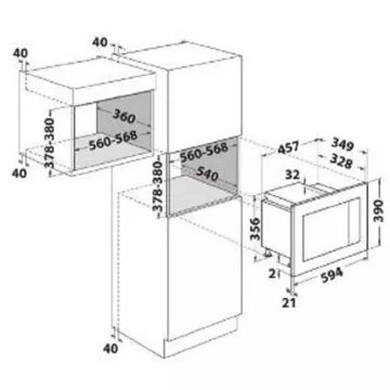 Dimensions d’encastrement L x H x P : 56,8 x 38 x 36 cm