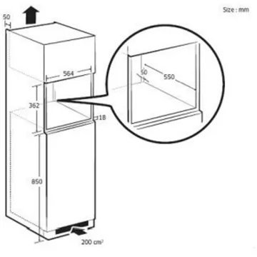 • Hauteur niche d’encastrement : Micro ondes hauteur 38 cm