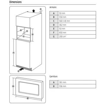 • Hauteur niche d’encastrement : Micro ondes hauteur 38 cm