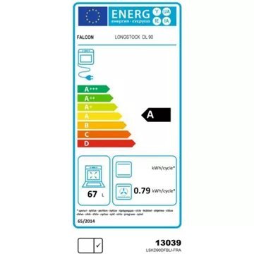 - Valeurs du label énergie : Label énergie A, Consommation en convection naturelle 0,79 kW, Consommation en chaleur tournante 0,88 kW