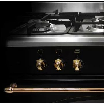 Le piano de cuisson gaz GLEM GU850CER se distingue par son plan de cuisson inox, équipé de 5 foyers gaz, incluant un brûleur triple couronne de 3800 W pour une puissance totale de 11,3 kW. Cette configuration permet une grande flexibilité culinaire, des mijotages délicats avec le foyer auxiliaire de 1000 W aux saisies intenses grâce au brûleur rapide de 3000 W. L’allumage électronique par bouton et la sécurité gaz par thermocouples offrent confort d’utilisation et tranquillité d’esprit. Les 3 grilles émaillées mates, au design aspect fonte, ajoutent une touche d’authenticité et de robustesse, tandis que le départ de crédence facilite l’installation entre deux meubles de cuisine.