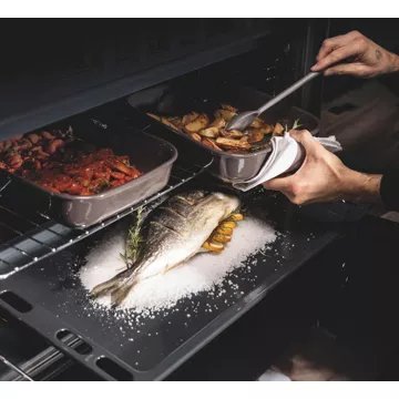 - Nettoyage : catalyse, permet un auto-dégraissage qui fonctionne à partir de 200°C. La graisse sera absorbée pendant la cuisson, vous n’avez plus qu’à passer un coup d’éponge sur la sole du four en fin de cuisson.