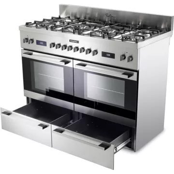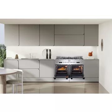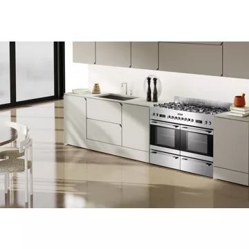 Le design ergonomique du ROSIERES RGM126D2X, avec ses rails télescopiques, facilite l’accès aux plats en toute sécurité, sans risque de basculement ou de brûlure. De plus, ce modèle offre une grande capacité avec ses deux fours de 59 litres chacun et intègre deux tiroirs de rangement pratiques. Les pierres à pizza incluses permettent de saisir la pâte à la perfection, ajoutant une touche authentique à vos soirées pizza. Avec une largeur de 120 cm et une finition en inox, ce piano de cuisson multifonction s’intègre élégamment dans toute cuisine, tout en offrant une expérience de cuisson professionnelle.